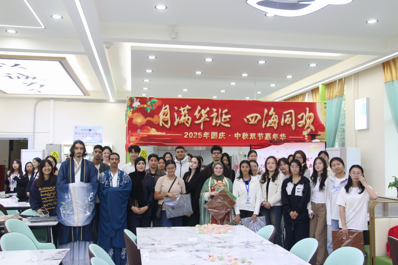 在中华人民共和国成立76周年与中华民族传统中秋佳节双节同庆之际,9月28日下午,学校精心打造的“月满华诞,四海同欢”2025年国庆·中秋双节嘉年华活动温情启幕。全体留学生与青年学生代表齐聚一堂,在沉浸式文化体验中庆双节、叙友情,让家国情怀在欢声笑语中悄然传递。