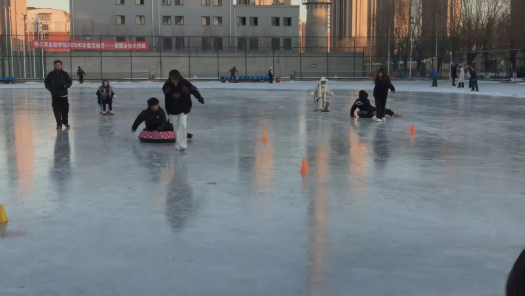 冬日凛寒浸冰场,青春热血绽锋芒。为丰富校园文体生活,弘扬冰雪运动精神,2025年12月10日13:30,哈尔滨金融学院冰雪活动月冰上接力障碍赛、雪圈冰壶大作战在学院冰场完美收官,大学生体育协会主管教师綦磊出席本次活动,全体参赛学子以昂扬姿态书写冰雪运动的活力篇章。