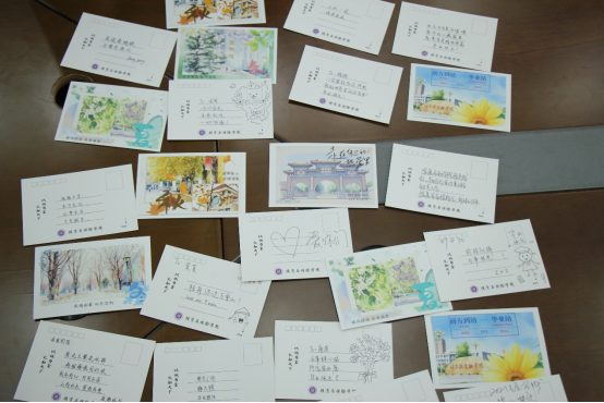 在互动环节上,同学们互写明信片表达祝福。一张张手写明信片上写满了对同窗情谊的珍视和对未来发展的美好祝愿。与会师生合影留念,记录下这难忘的时刻。