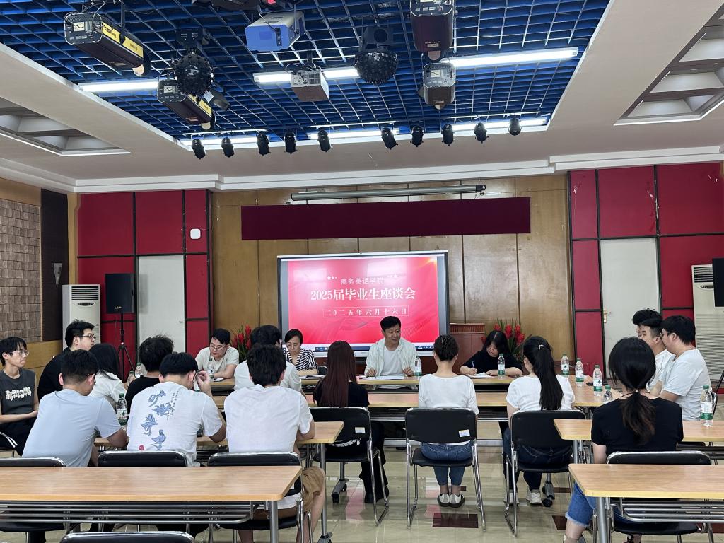 本次毕业生座谈会不仅为师生搭建了真诚沟通的桥梁,也体现了学院对学生成长与发展的殷切关怀。相信在学院领导、老师和同学的共同努力下,商务英语学院将持续推动高质量人才培养,助力毕业生乘风破浪,奔赴更加广阔的天地!