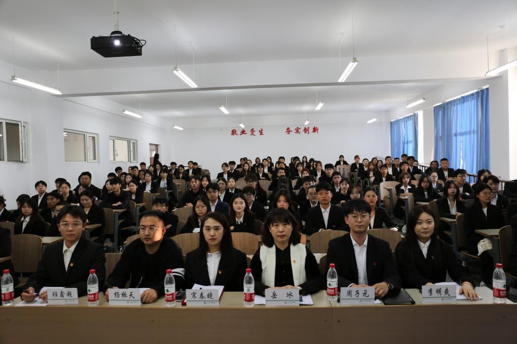 金秋送爽,丹桂飘香。在这个充满希望与收获的季节里,哈尔滨金融学院文法学院第二次学生代表大会于 2024 年 9 月 24 日在综合楼226隆重召开。大会预备会议在庄重的氛围中拉开帷幕。出席本次大会的有哈尔滨金融学院团委副书记岳冰老师,文法学院团委书记宋春晓老师,文法学院辅导员周子元老师,文法学院辅导员杨栎天老师,哈尔滨金融学院校学生会主席班鑫超。
